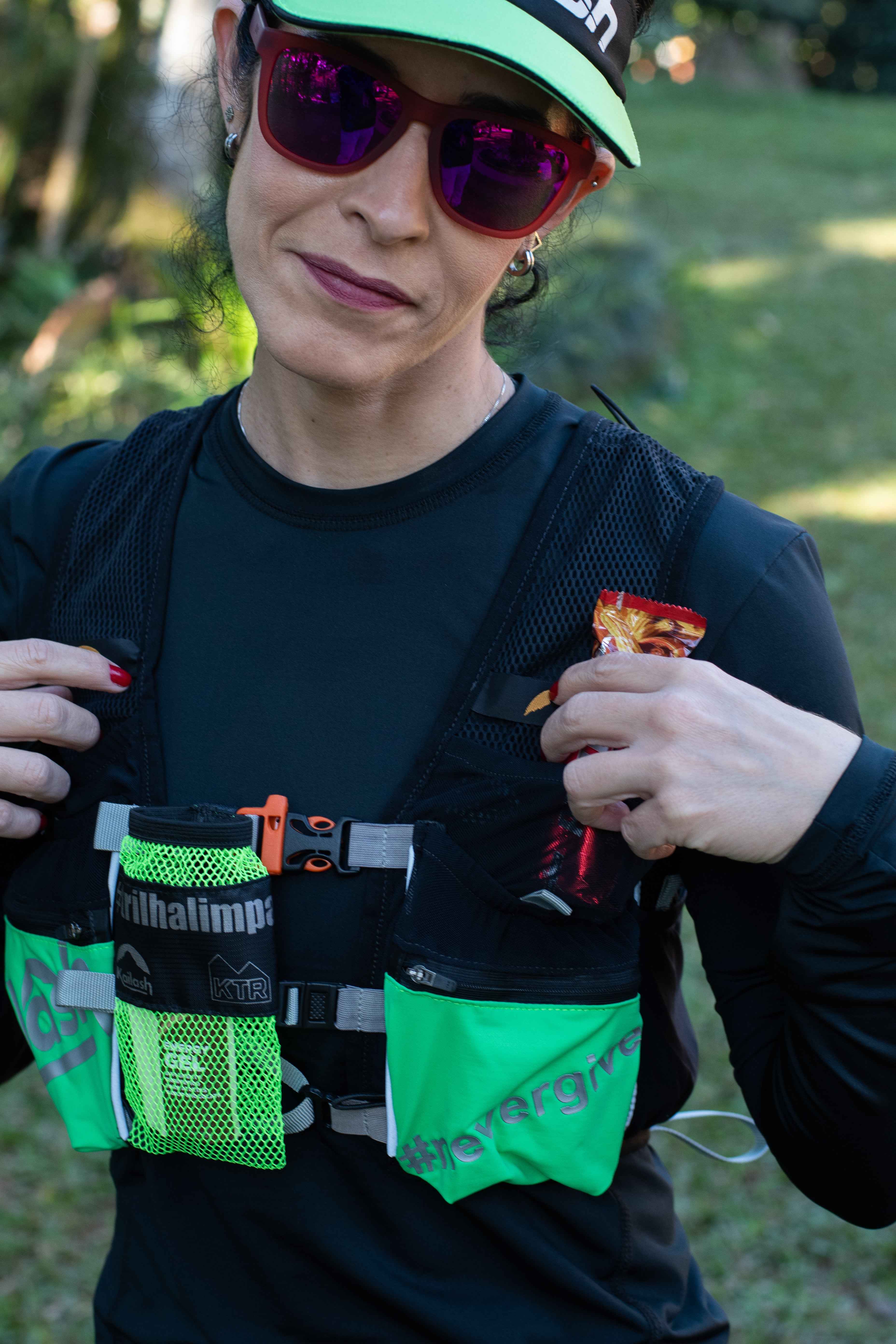 2 bolsos frontais extensíveis para géis ou barrinhas